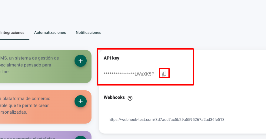 • Finalmente podrás ver la API Key. Click en el botón copiar si necesitas su valor.