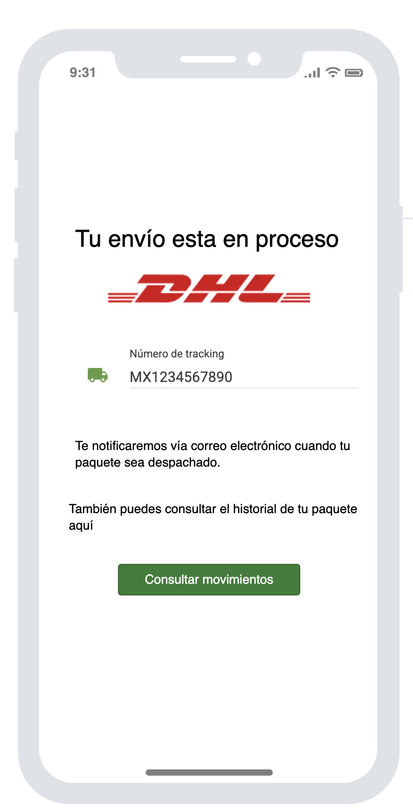 Una vez recibido, con estos datos podrás mostrar a tu cliente los detalles de su envío.